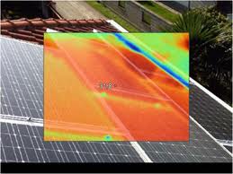 Esame termografico con termocamera ad infrarossi per verificare eventuali anomalie nelle cellule dei moduli